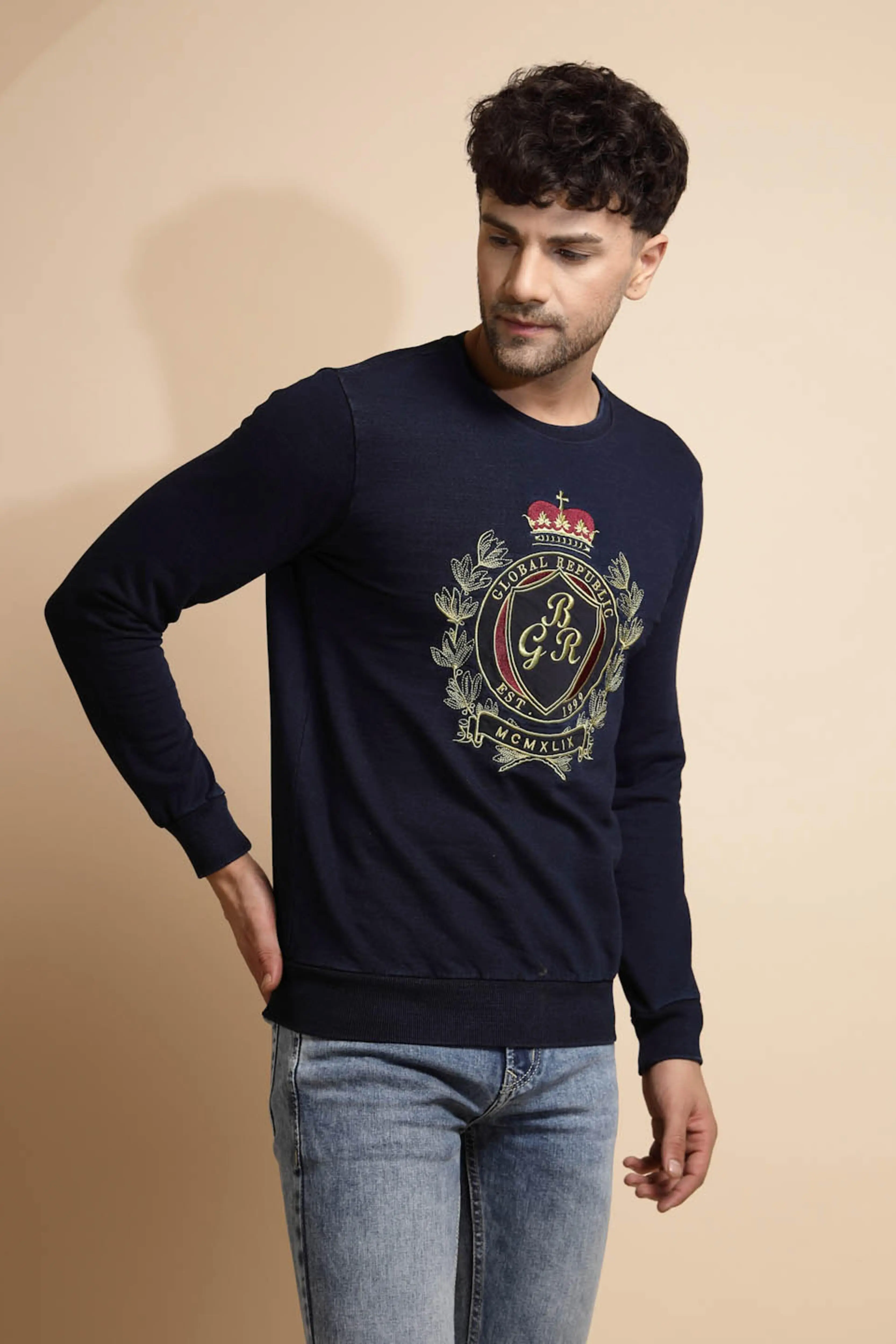 Prepare your beauty outfits with the best sweatshirts in town. This Indigo Blue Raglan Sweatshirt is crafted with the supreme quality of Hosiery finished with raglan sleeves and ribbed hem. It's Anti Fit design paired with the Round Neck and solid pattern make it a fabulous fit for all your favourite outings.