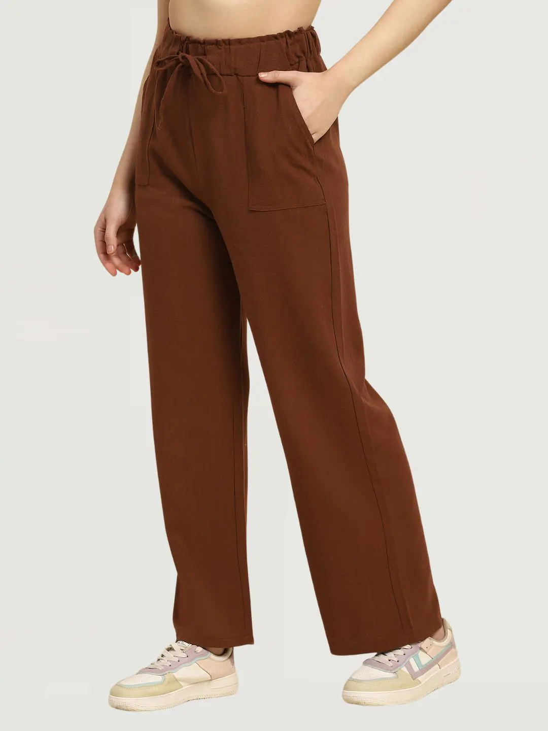 Brown Cotton Blend Solid Lower