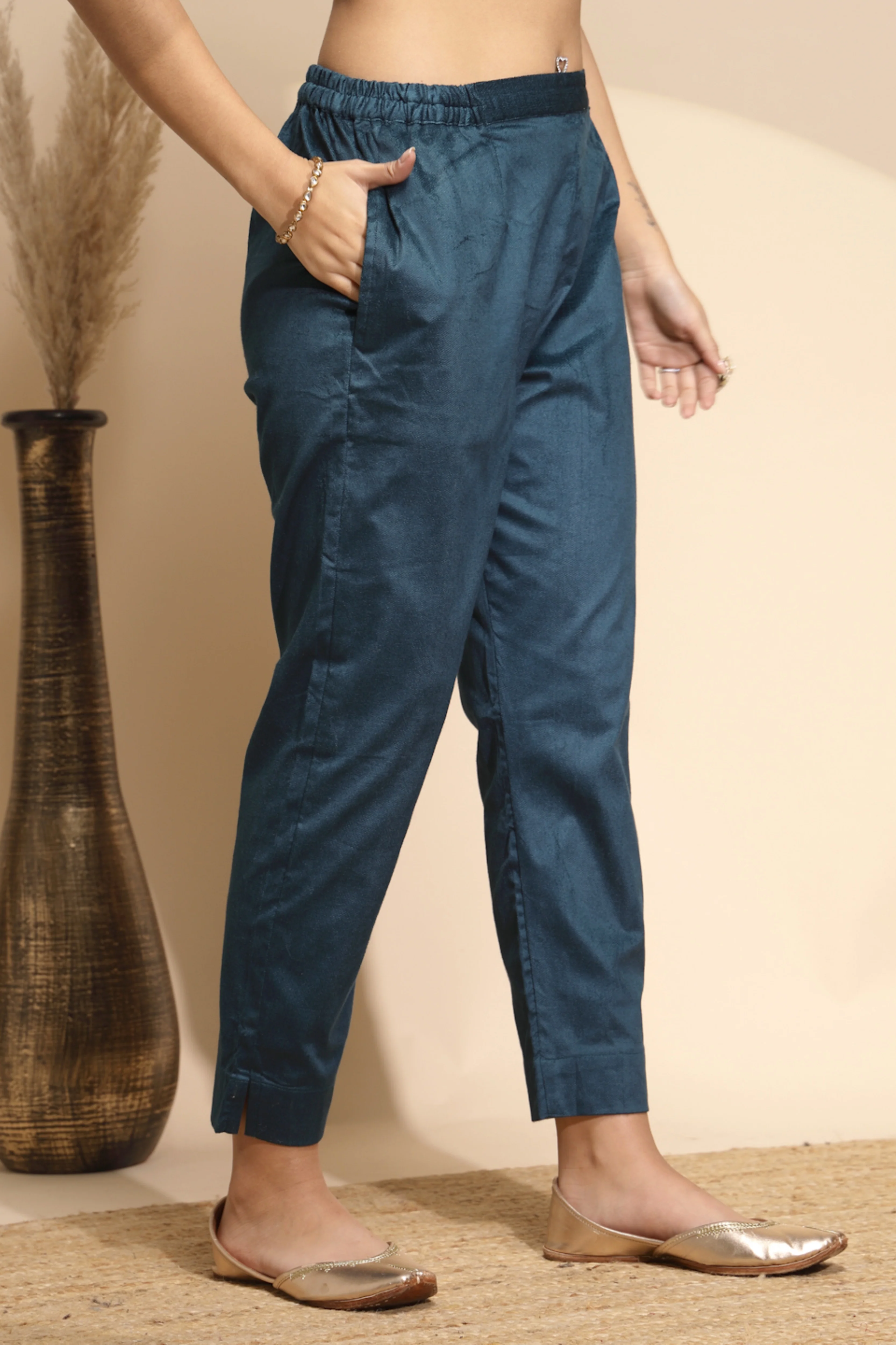 Slip into comfort and sophistication with our Women's Pants from Global Republic. These pants are crafted with high-quality woolen blend and a touch of spandex, providing exceptional stretch for unrestricted movement. The stylish solid adds a fashionable flair to the classic blue color, making them a must-have for trend-conscious women. With a slightly Straight regular fit, these pant are perfect for the summer season, blending stylish appeal and exceptional comfort.