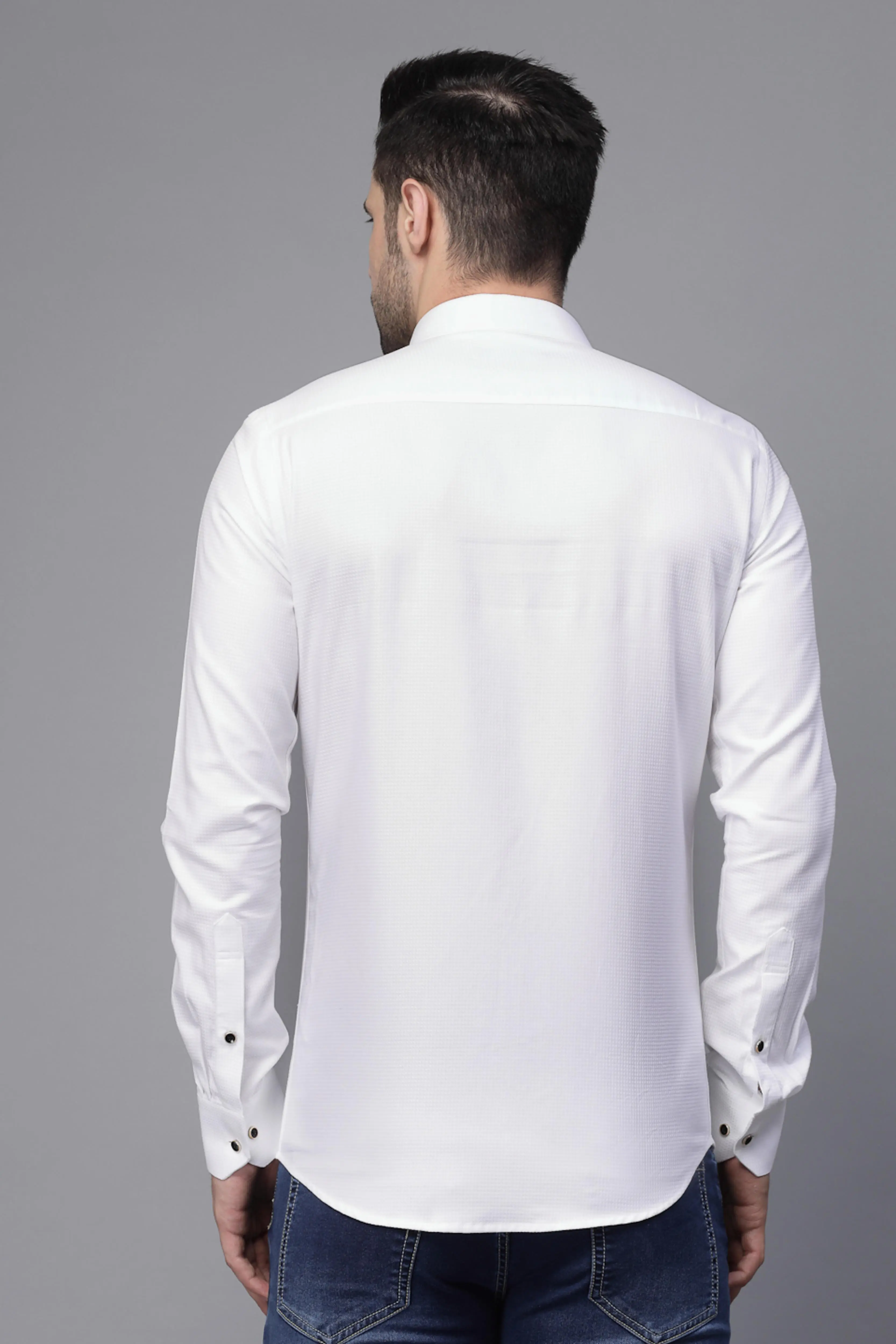 Get your wardrobe the most classy upgrade with our lovely delight. Crafted from the finest Cotton Blends fabric, this particular White shirt is the epitome of comfort and style fused together. Be it your favourite nightout or the worst day at work, the collared neck and the regular fit will be your comfort zone at any outing.