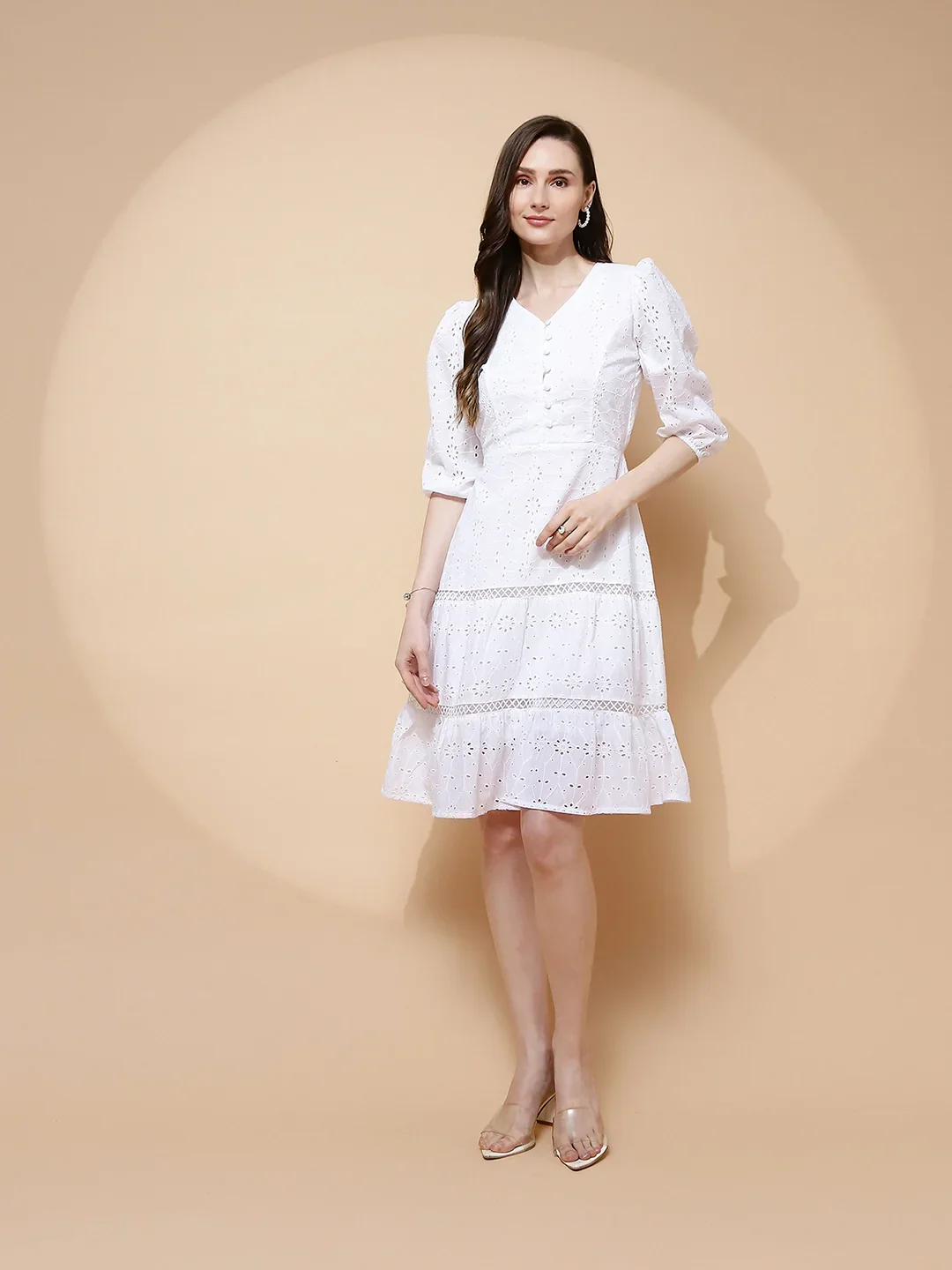 With growing awareness around sustainable practices in the fashion industry, choosing cotton as a primary material is an excellent decision. Cotton is biodegradable, ensuring that your wardrobe remains eco-friendly. By opting for the White Cotton Schiffli Flared Dress, you are making a conscious choice that contributes to a healthier planet.
