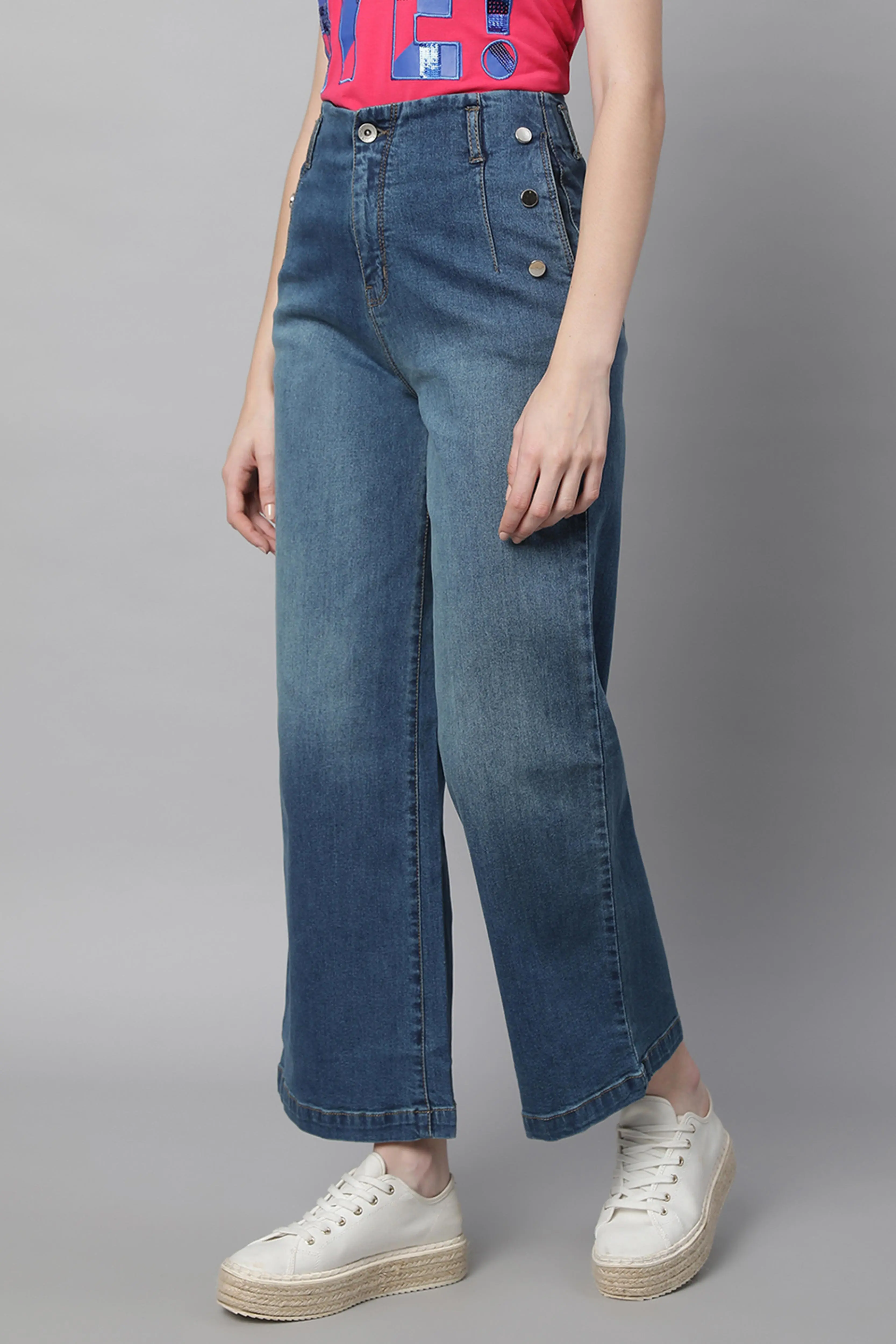 Flared Leg Straight Loose Fit Tint Blue Jeans