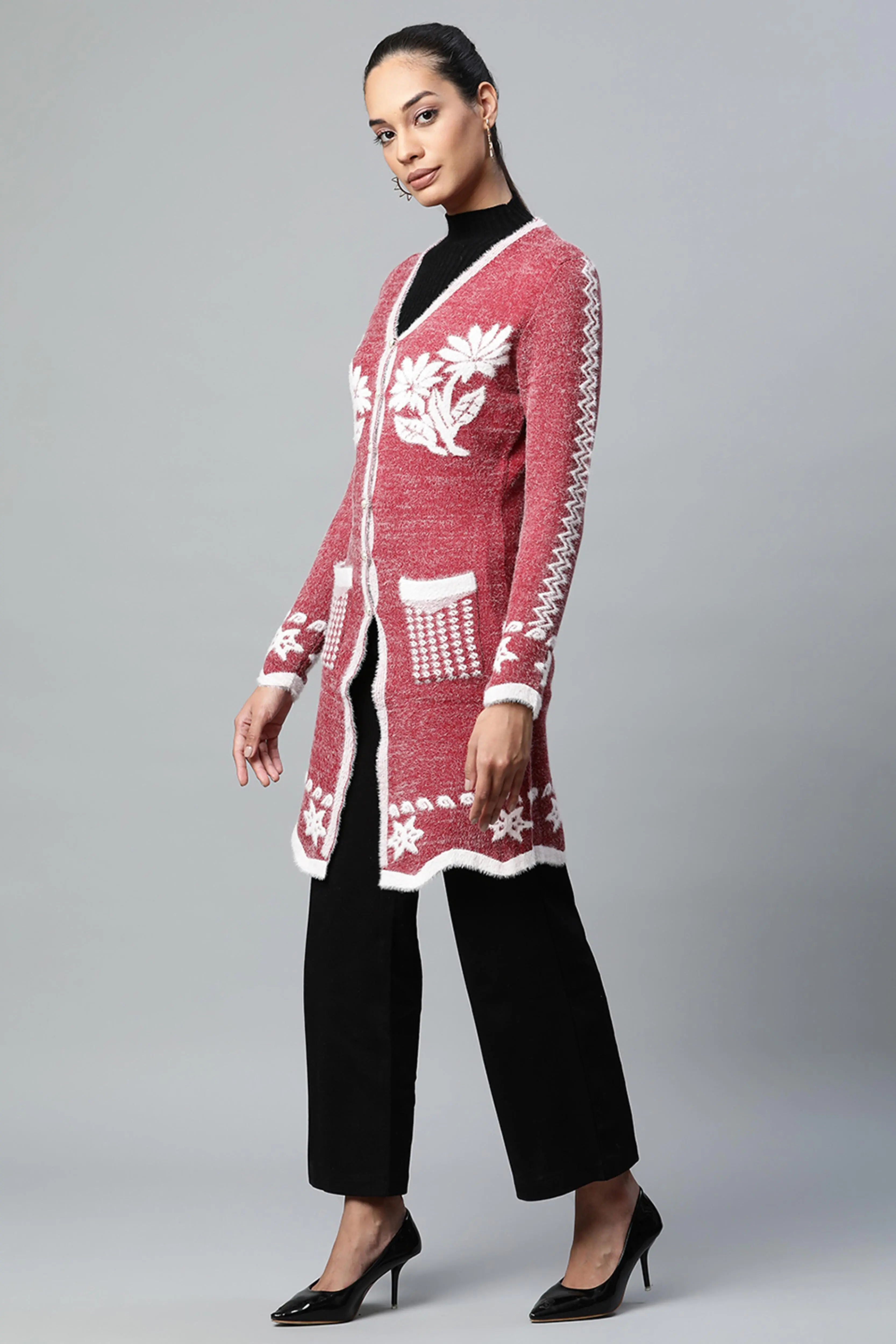 Wrap yourself in timeless style with this wine wool Blend Embroidered Long Cardigan from Global Republic. Crafted in a cozy wool blend, this longline cardigan features delicate embroidery that adds a refined, artisanal touch to its warm, earthy tone.