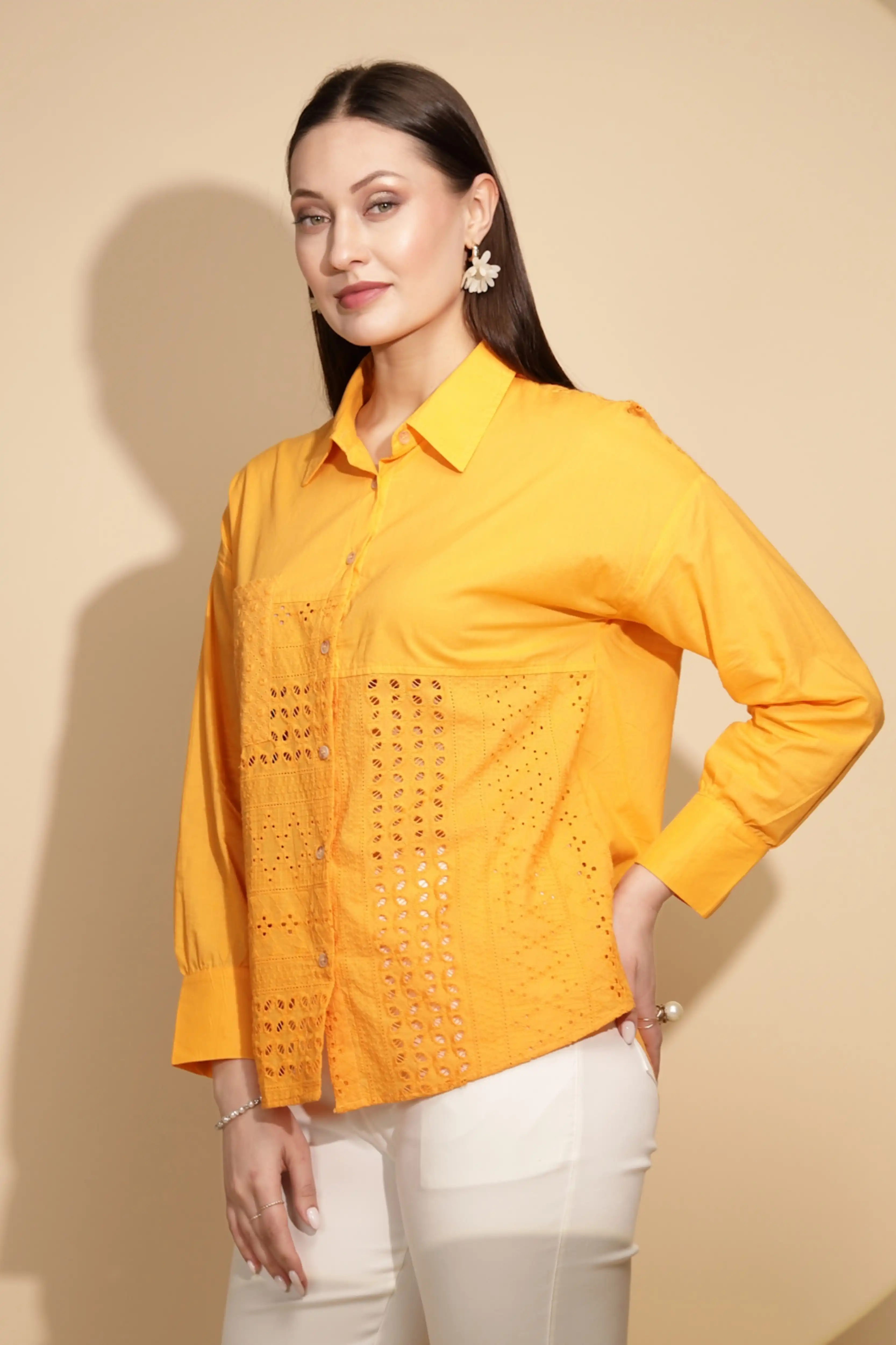 Cotton Schiffli Embroidered Shirt